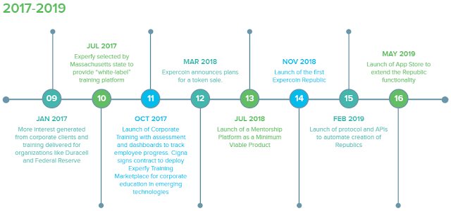 Harvard-inkubated Experfy menjalankan komunitas yang berfokus pada AI dari 30.000 ilmuwan data untuk membantu mentor Fortune 500 dan meningkatkan keterampilan karyawan mereka dan juga merekrut freelancer ahli sesuai permintaan. Menyaksikan pertumbuhan permintaan untuk platformnya, Experfy berusaha untuk secara eksponensial memperluas dampak dari visi bisnisnya. Namun, daripada menambahkan spesialisasi baru ke platform yang ada, Experfy berencana mendesentralisasikan teknologinya dengan dan melalui Expercoin, Inc dengan tujuan memungkinkan siapa saja meluncurkan komunitas baru dengan pasarnya sendiri secara instan. Expercoin terdiri dari lapisan protokol dan aplikasi front-end bagi pengguna untuk membangun organisasi otonom yang sangat fleksibel yang dikenal sebagai Republik. Pasar-pasar baru yang terdesentralisasi ini memberdayakan masyarakat dan lembaga-lembaga dengan solusi out of the box yang tidak memerlukan keterampilan pengembangan perangkat lunak.